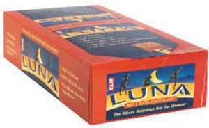 Clif, Luna, Nutrition Bar for Women, Nutz Over Chocolate, 15 - 1.69 oz (48 g) bars [25.4 oz (720 g)], 15/box.The whole nutrition bar for women. Soy Protein. 180 Calories. High in Calcium. 100% RDI Folic Acid. Non-wheat/non-dairy ingredients. (We source ingredients which do not contain wheat or dairy.) No high fructose corn syrup. 23 Vitamin & minerals. We believe what we put into our bodies matters; food feeds our souls, lifts our spirits, nourishes and sustains us. That's why we created Luna, the blissfully good, whole nutrition bar for women. In just 180 calories, Luna meets many of the specific nutritional requirements women need everyday to maintain active lifestyles. Join us in healthy, joyous living!Supplement FactsServing Size 1 barAmount Per Serving% Daily ValueCalories180 Calories from Fat40 Total Fat4.5 g 7Saturated Fat2.5 g 11Polyunsaturated Fat0 g Monounsaturated Fat0 g Cholesterol0 mg 0Sodium100 mg 4Potassium105 mg 3Total Carbohydrate24 g 9Dietary Fiber2 g 8Sugars12 g Other Carbohydrate10 g Protein10 g Vitamin A 25Vitamin C 100Calcium 35Iron 35Flavor Vitamin E 100Biotin 100Chromium 35Copper 35Folate 100Iodine 35Magnesium 35Manganese 35Molybdenum 35Pantothenic Acid 100Phosphorus 35Selenium 35Thiamin (Vitamin B1) 100Vitamin B12 100Vitamin B6 100 100Zinc 35Riboflavin (Vitamin B2) 100Niacin (Vitamin B3) 100Ingredients:LunaPro (Soy Nuggets [Soy Protein Isolate, Rice Flour, Malt Extract], Rolled Oats, Soy Flour, Soy Protein Isolate, Milled Flaxseed), Brown Rice Syrup, Peanut Butter (Peanuts, Salt), Peanut Flour, Natural Fl