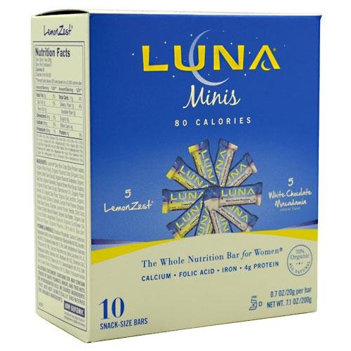 The Luna bar is now mini! Available in convenient variety packs. Pack 1: white chocolate macadamia (5), lemon zest (5). Pack 2: nutz over chocolate (5), smores (5).